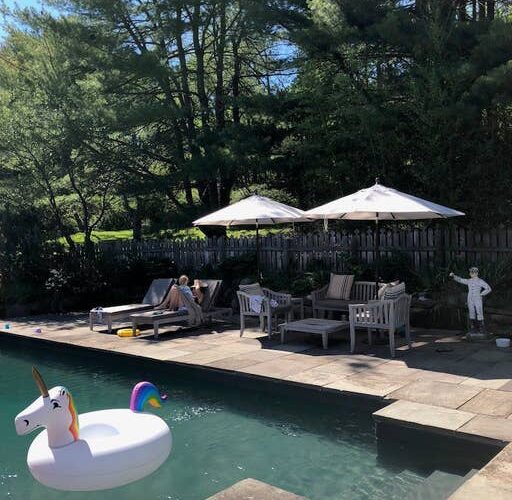 There is a a newly restored pool with beautiful outdoor furniture, outdoor shower and pool toys for the kids. A large table is available for eating under the stars or in the sunshine—complete with umbrella for some shade.