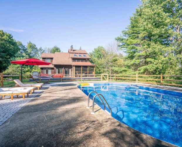 Retreat to a private oasis with a luxurious outdoor living space including a pool and fire pit. The four bedroom, two bathroom house includes ample room for lounging by the fireplace, enjoying a meal in the spacious kitchen or enjoying the secluded and expansive outdoor area. The property’s location in Olivebridge offers proximity to the Ashokan Reservoir and cozy towns like High Falls and Stone Ridge.